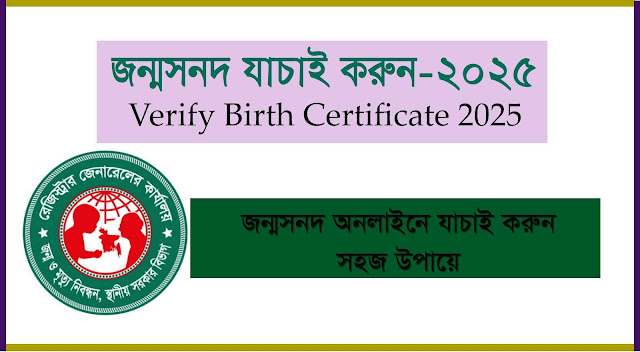 বিভিন্ন দাপ্তরিক প্রয়োজনে আমাদের জন্মসনদের তথ্য যাচাই করার প্রয়োজন হয়। অনলাইনে জন্মসনদ যাচাই করার জন্য everify BDRIS Gov BD অথবা Birth Certificate Verification করার জন্য রেজিস্ট্রার জেনারেলের কার্যালয়, জন্ম ও মৃত্যু নিবন্ধন এর ওয়েব সাইটে ভিজিট করতে হবে। ওয়েবসাইটটির ঠিকানা হলো- https://everify.bdris.gov.bd/